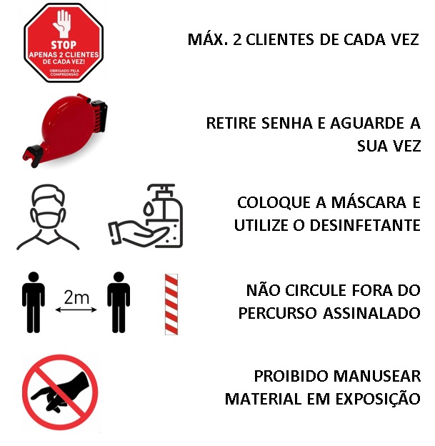 A todos os clientes solicitamos o respeito pelas seguintes regras de segurança, para a defesa da saúde de todos: